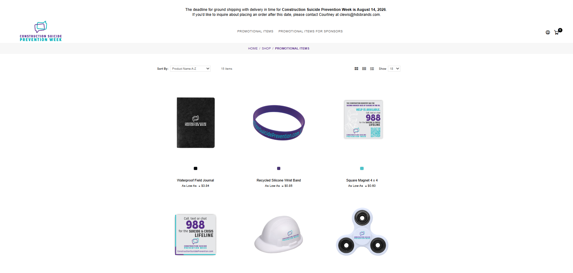 Materials help spread awareness of CSPW’s lifesaving message, including highlighting the National 988 Lifeline on items for job sites. Secure your MATERIALS and apparel today by clicking the link below!